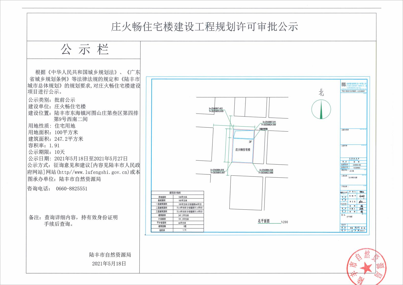 庄火畅住宅楼建设工程规划许可审批公示