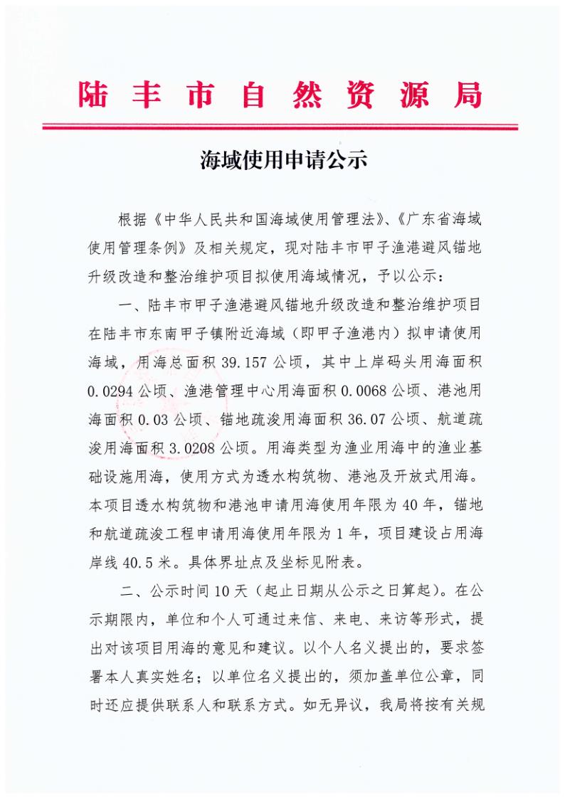 海域使用申请公示