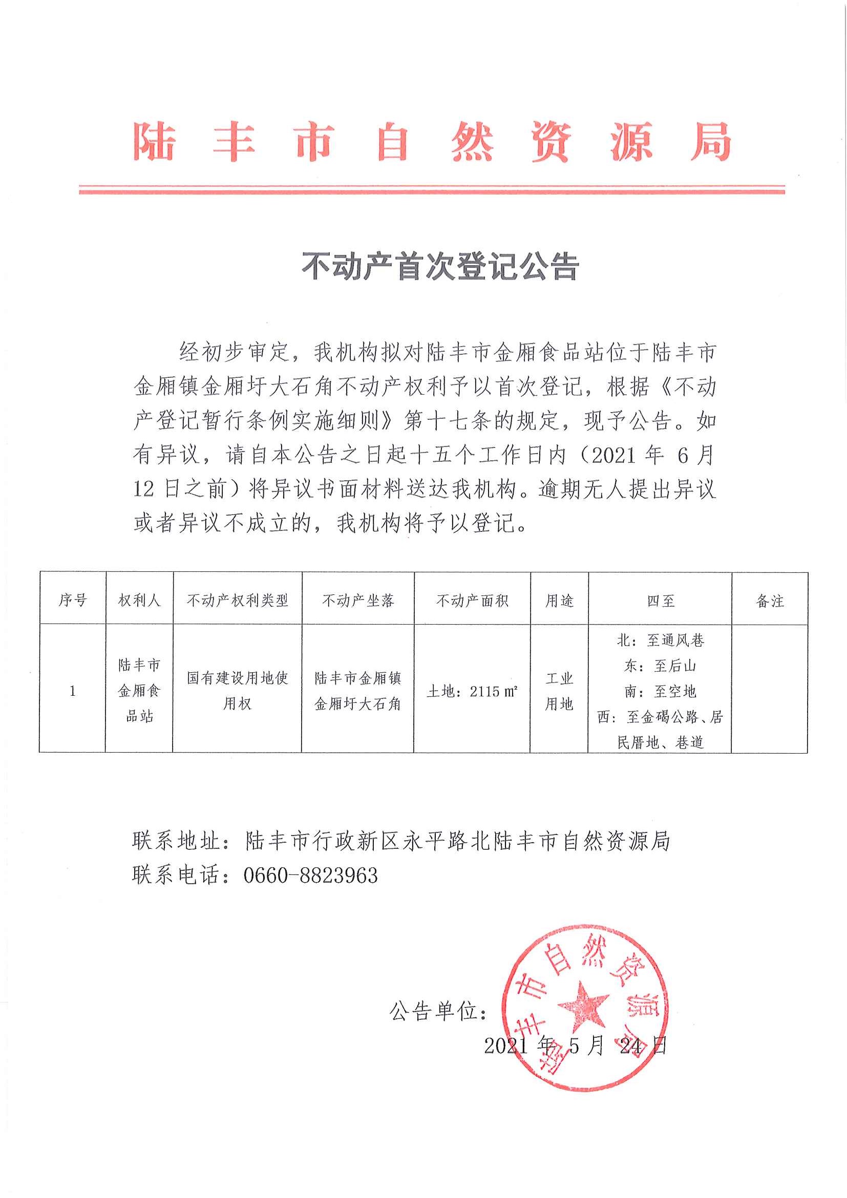 不动产首次登记公告