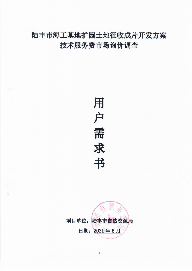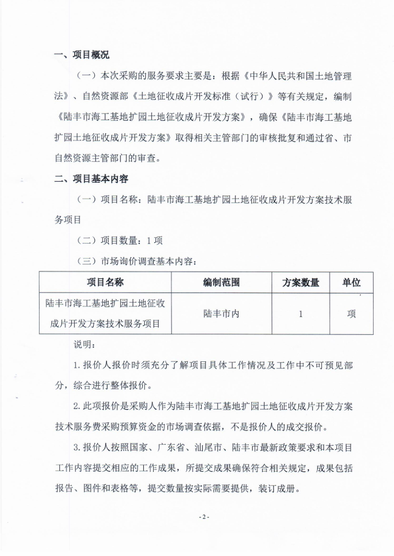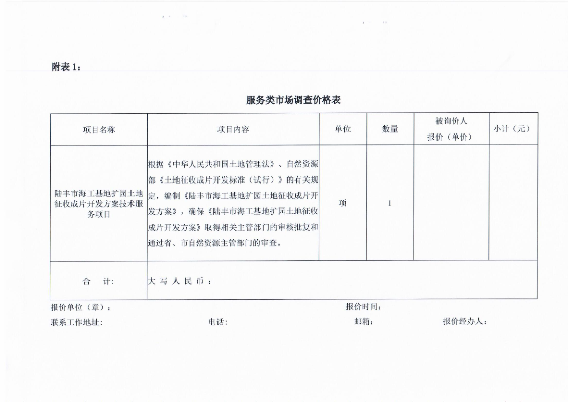 苹果直播 海工基地扩园土地征收成片开发方案技术服务费市场询价调查需求书
