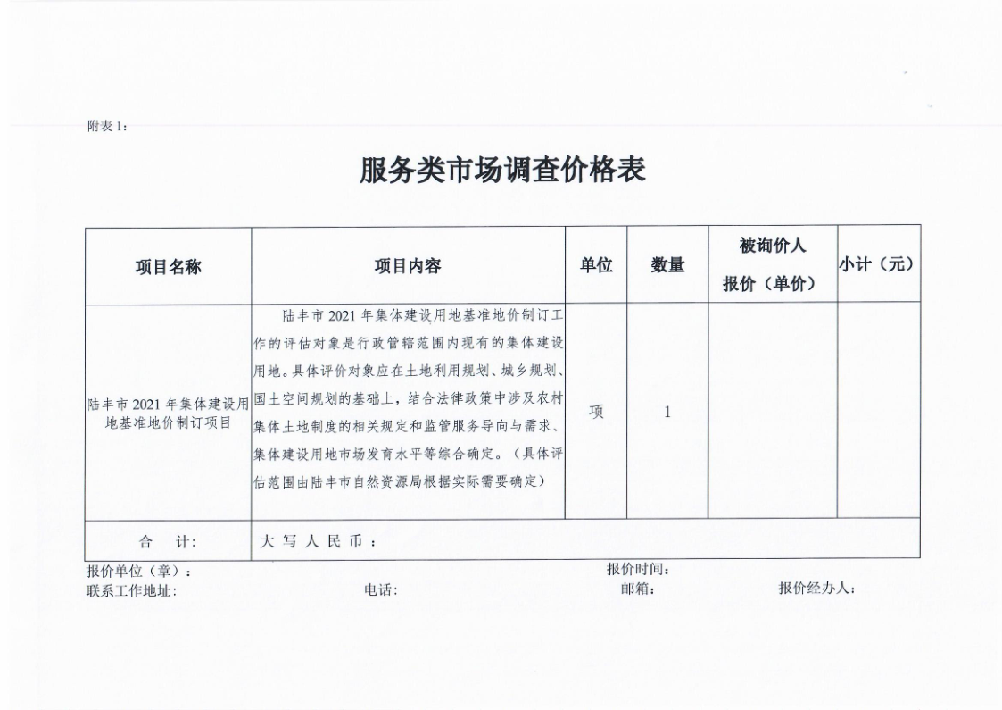 苹果直播 2021年集体建设用地基准地价制订项目服务费市场询价调查