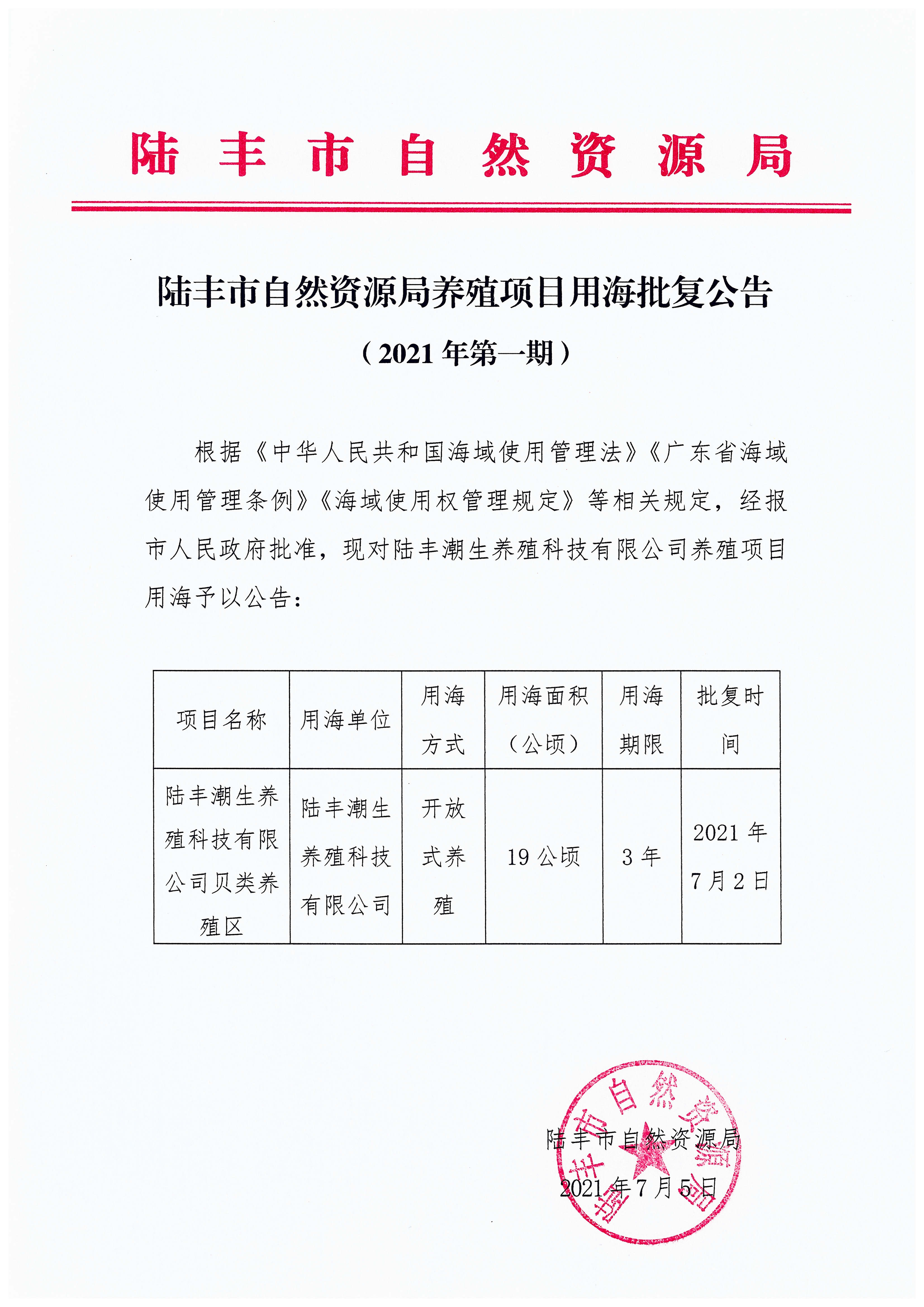 苹果直播 自然资源局养殖项目用海批复公告(2021年第一期)