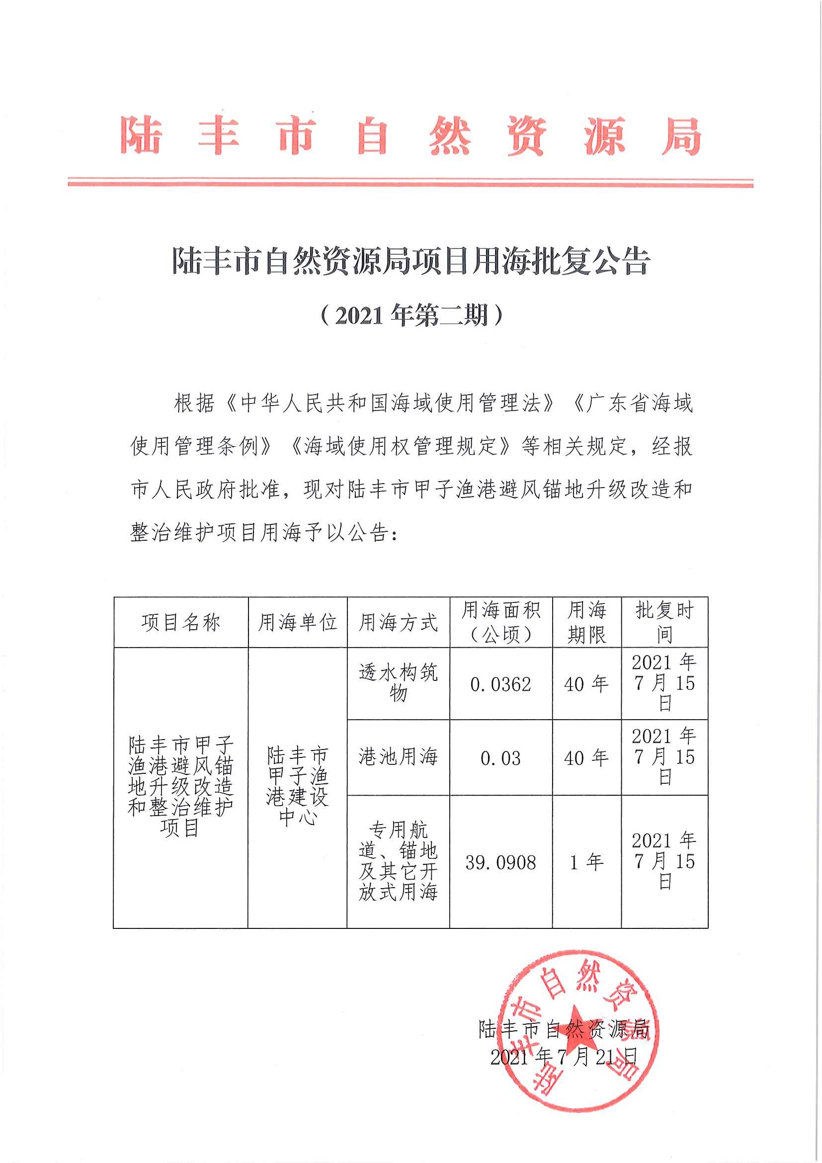 苹果直播 自然资源局项目用海批复公告(2021年第二期)