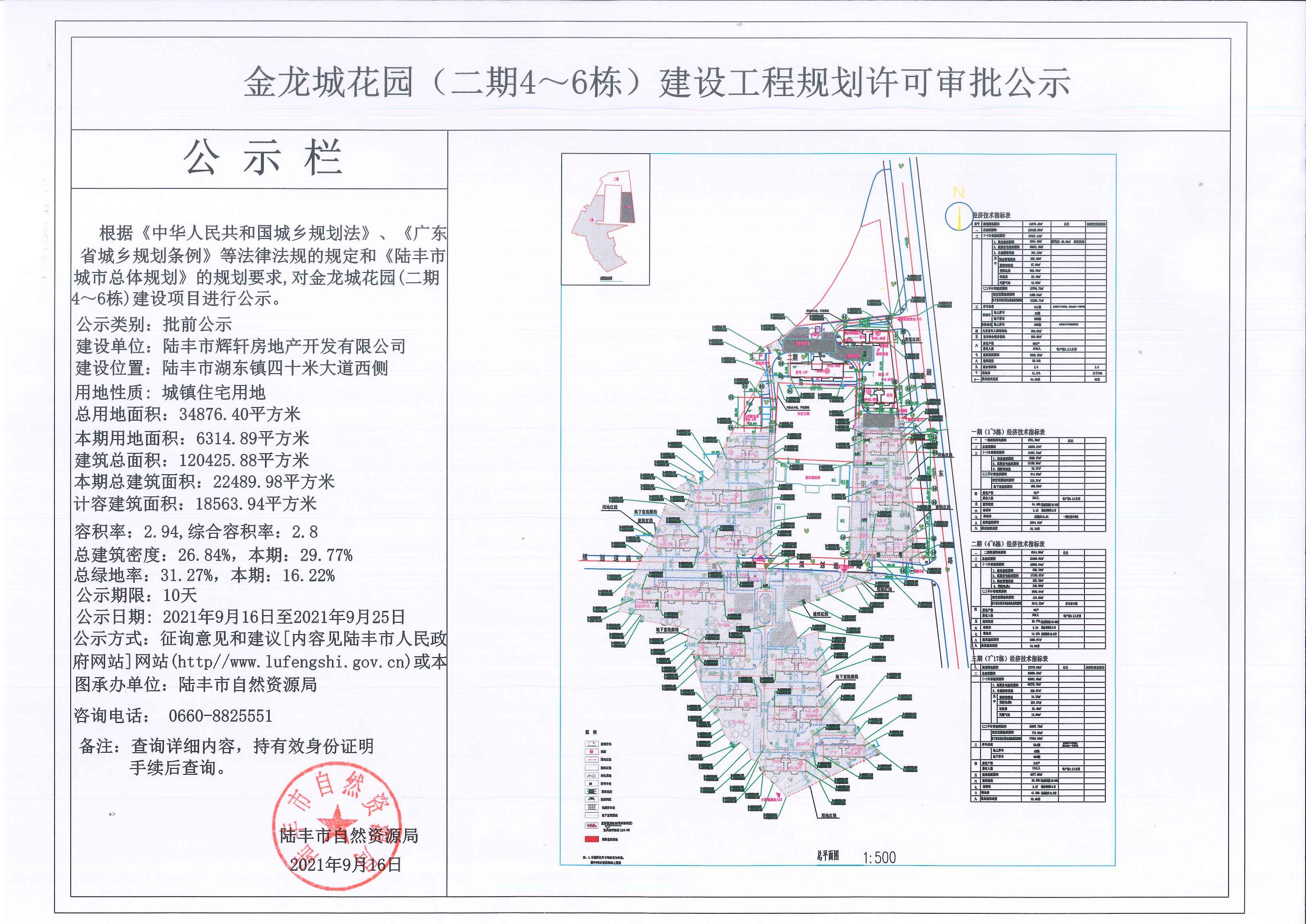 金龙城花园(二期4~6栋)建设工程规划许可审批公示