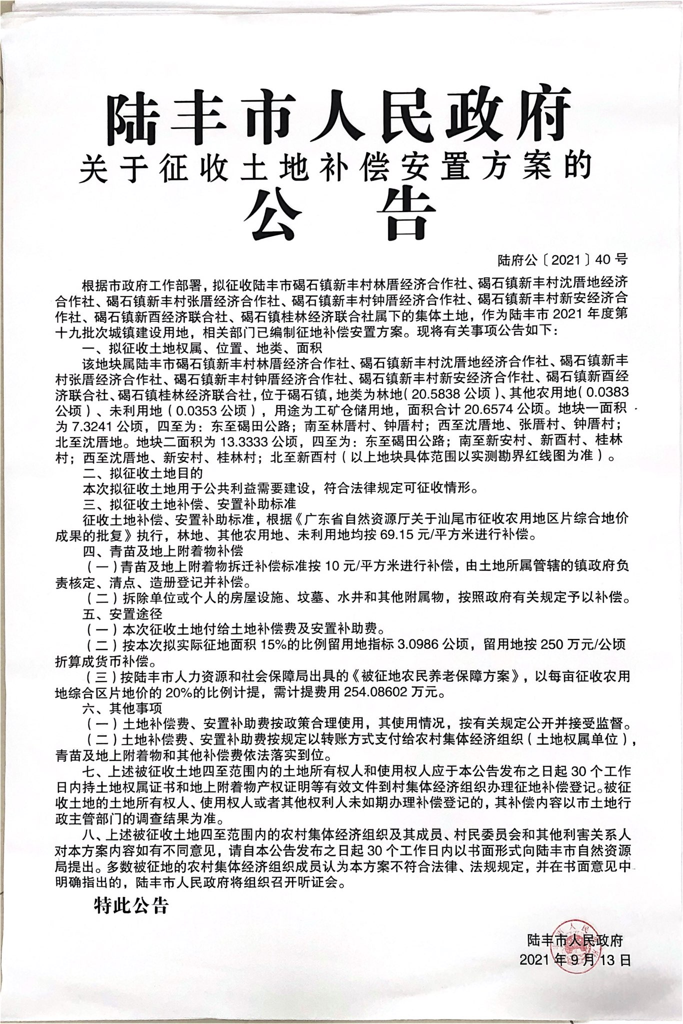 苹果直播 关于征收土地补偿安置方案的公告(陆府公[2021]40号)