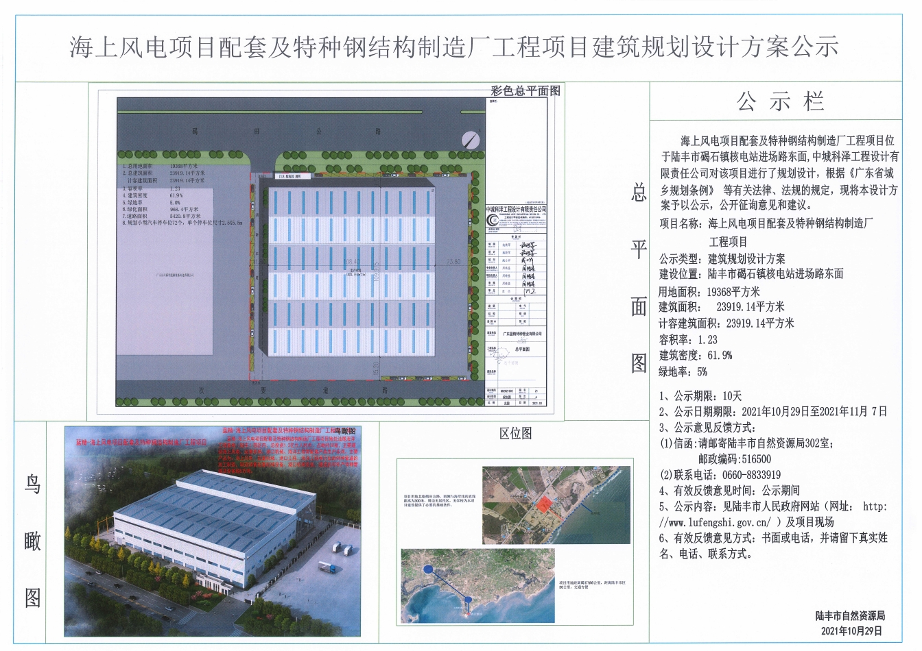 海上风电项目配套及特种钢结构制造厂工程项目建筑规划设计方案公示
