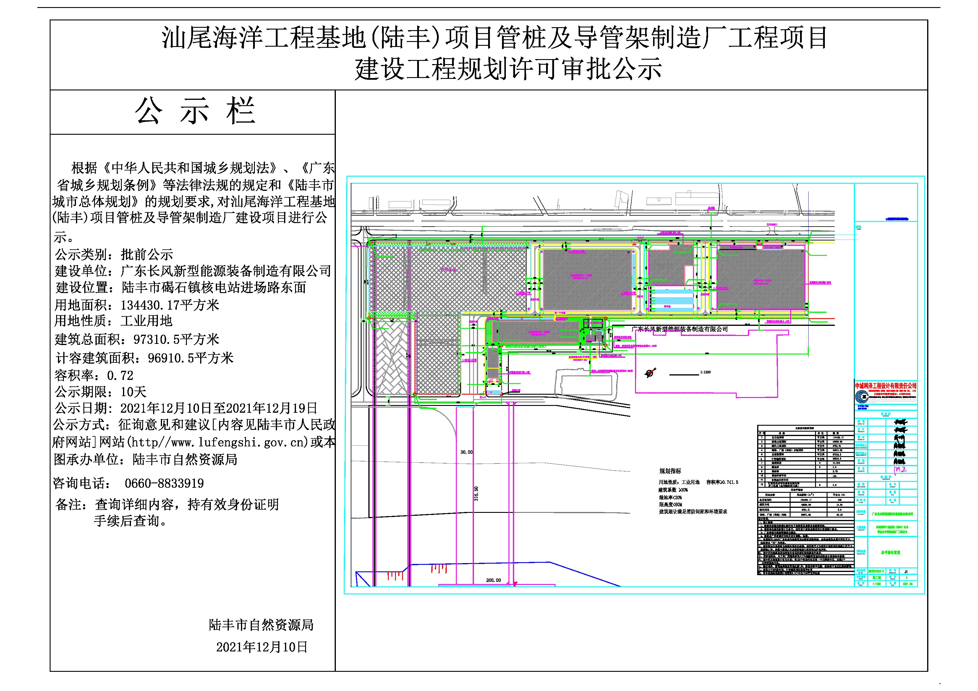 汕尾海洋工程基地(陆丰)项目管桩及导管架制造厂工程项目建设工程规划许可审批公示