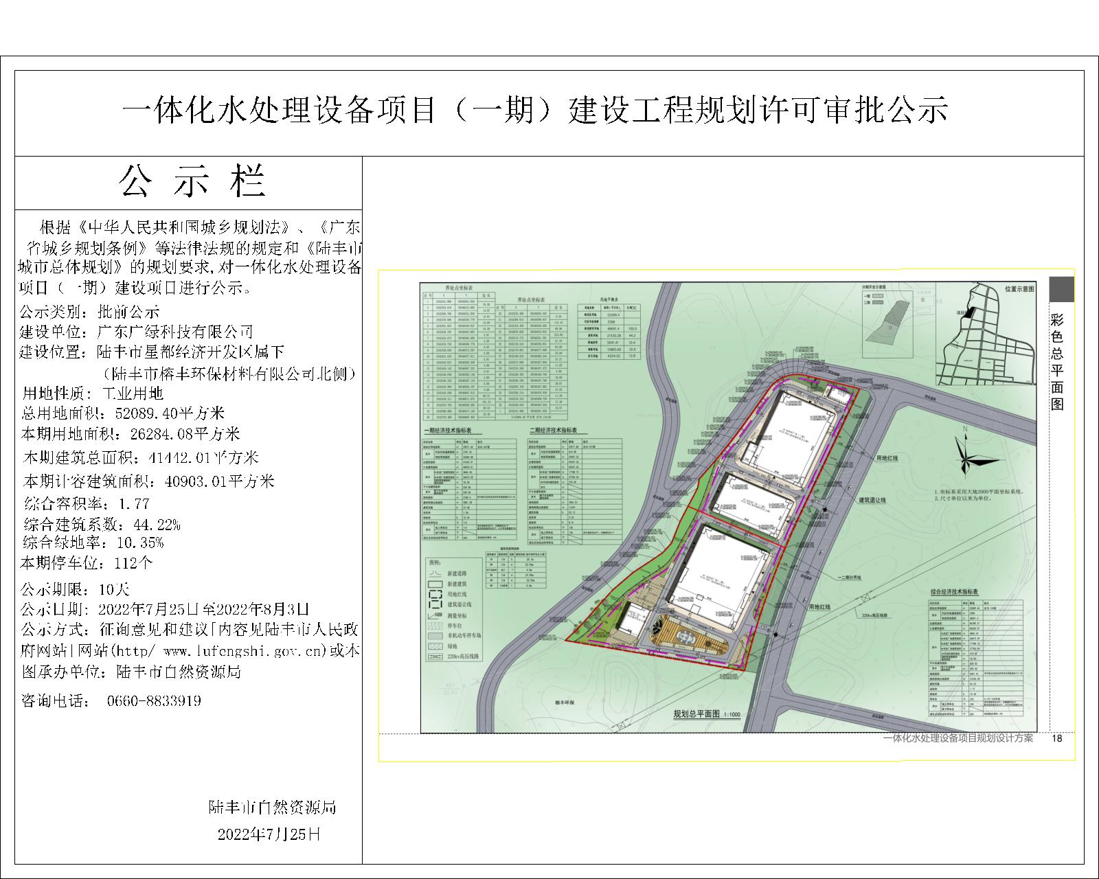 一体化水处理设备项目(一期)建设工程规划许可审批公示