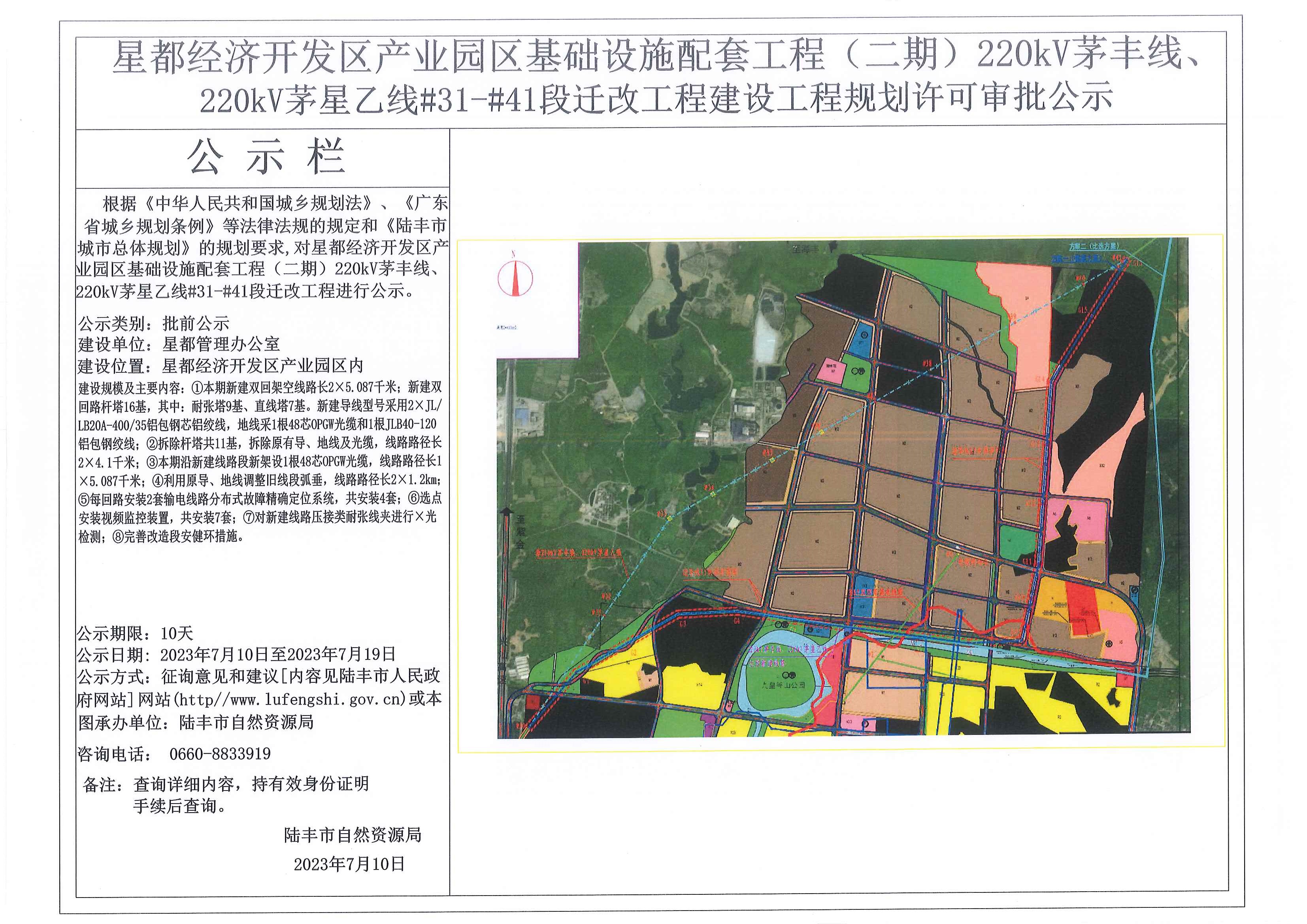 星都经济开发区产业园区基础设施配套工程 (二期) 22kV茅丰线、220kV茅星乙线#31-#41段迁改工程建设工程规划许可审批公示
