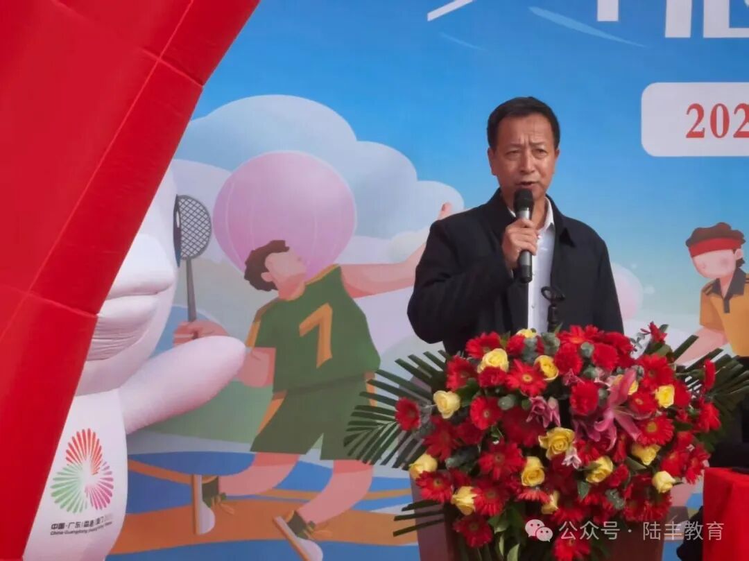 湖东镇中心小学党总支书记刘建锋在致辞中鼓励学子们在赛场上奋勇拼搏、学会协作,在体育中收获成长与快乐。