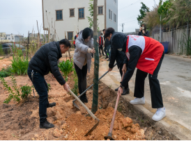 活动现场,志愿者们热情高涨、干劲十足,积极投入到植绿护绿兴绿的行动中。扶正树苗,挥锹铲土,浇水育苗,大家分工明确、配合默契,每一道植树工序有条不紊地开展着。经过大家一番辛勤劳动,一棵棵树苗“安家落户”,迎风挺立,焕发出盎然生机,为城东街道增添了一抹新绿。