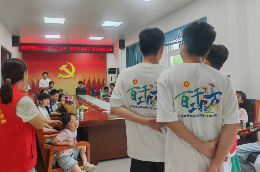 为进一步加强辖区未成年人暑期安全防范意识和自我保护能力,让孩子们度过一个充满安全感和幸福感的假期,结合大学生“三下乡”实践活动,7月17日下午,城东街道新时代文明实践所联合广东青年大学生“百千万工程”突击队行动深大慧海助学小队到东埔村新时代文明实践站开展“青春自护,暑期安全教育”宣传志愿服务活动。