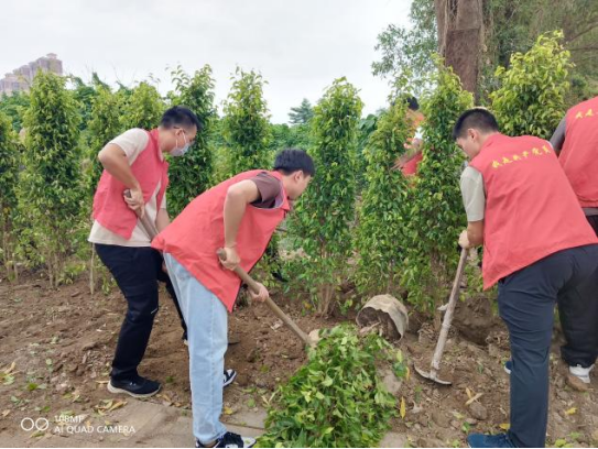 植树现场,大家五、六人一组,撸起袖子挥锹铲土、扶树正苗、浇水培土,一起栽下一株株苗木,现场一派热火朝天的劳动景象。经过大家的辛勤劳动,一棵棵新栽植的树木傲然挺立,为辖区生态环境增添了一道亮丽的风景。