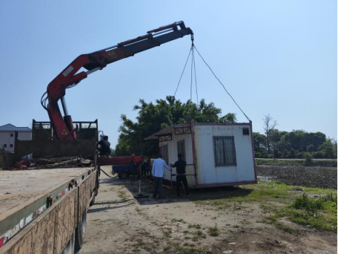 朱坤弟是上陈村低保户,房屋因年久失修,受3月15日强对流云团东移影响,出现雷雨天气,导致屋顶塌落,严重威胁其生命财产安全。村支书陈建业同志带领两委干部、驻村民警、村小组们在入户排查劝导的过程中,发现了朱坤弟的困境,为尽快帮他摆脱危险居住环境,村支书多方奔走、积极协调资源,通过与本村乡贤的商讨,乡贤陈苍庭慷慨捐赠一间集装箱房屋,为解决住房问题提供了关键物资。乡贤陈汉瑞也伸出援手,派出公司吊车设备并安排专业人员,全力支持房屋运输与安置工作。在多方共同努力下,集装箱房屋顺利运输至指定地点并完成落地安置。
