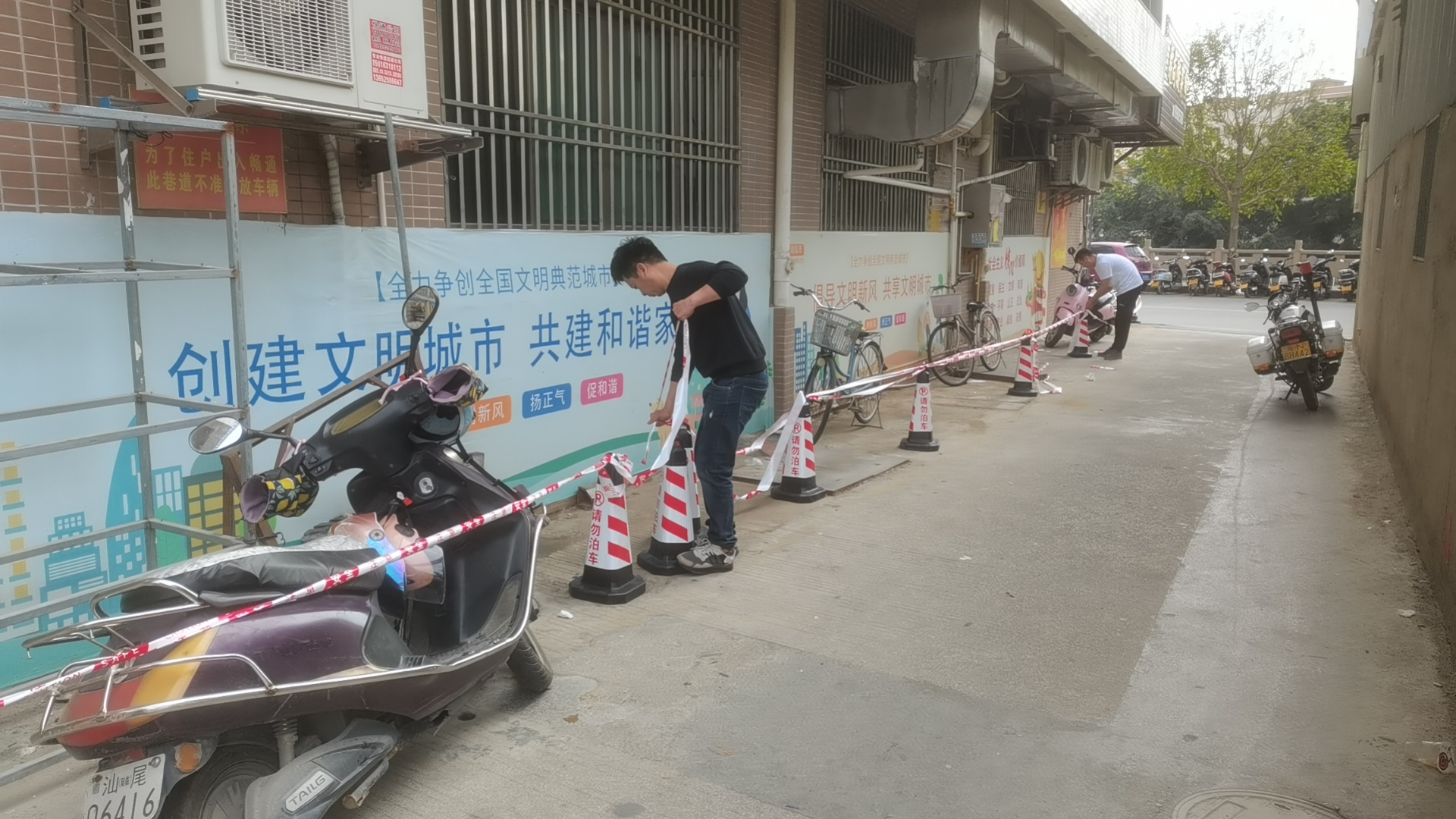 在整治行动中,东海街道组织网格队员在辖区重点路段、路口加强巡逻,及时发现及时制止乱停乱放行为,引导居民有序停放电动自行车、共享单车、老年代步车等各类非机动车辆。东海街道坚持以宣传教育为主,劝阻群众在人行道及盲道等区域停车,按规定将非机动车停放至划设的停车区域。工作人员还对现场不按规定停放的非机动车及时摆放整齐,并在乱停乱放严重的巷道设立警戒线,设置明显的禁止停车标志,以防非机动车辆占用通道。