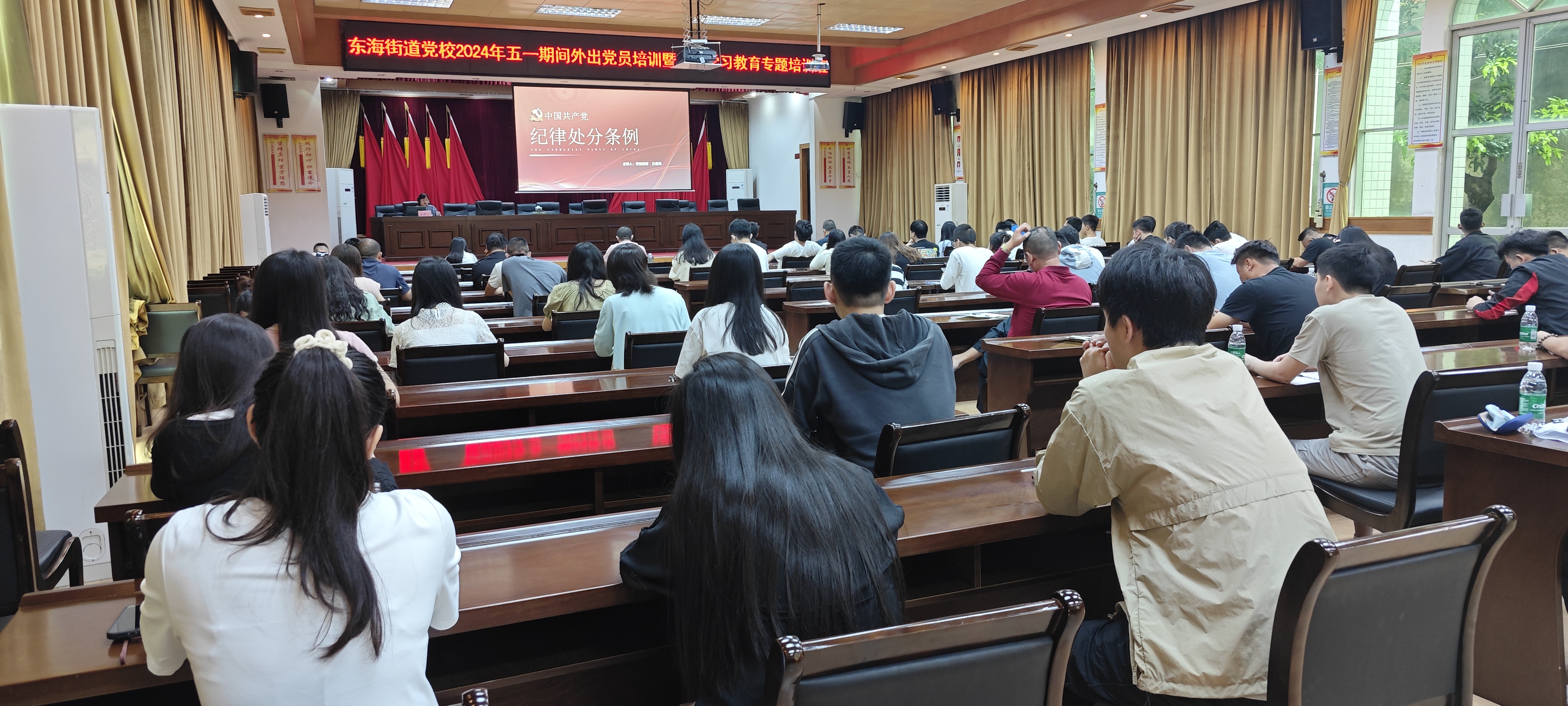 为进一步发挥镇街党校教育培训党员主阵地作用,破解外出流动党员教育培训跟不上的重点难点问题,充分利用“五一”劳动节期间外出党员集中返乡时机,加强对外出党员的教育培训,东海街道于5月1日举办2024年五一期间外出党员培训暨党纪学习教育学习专题培训班。