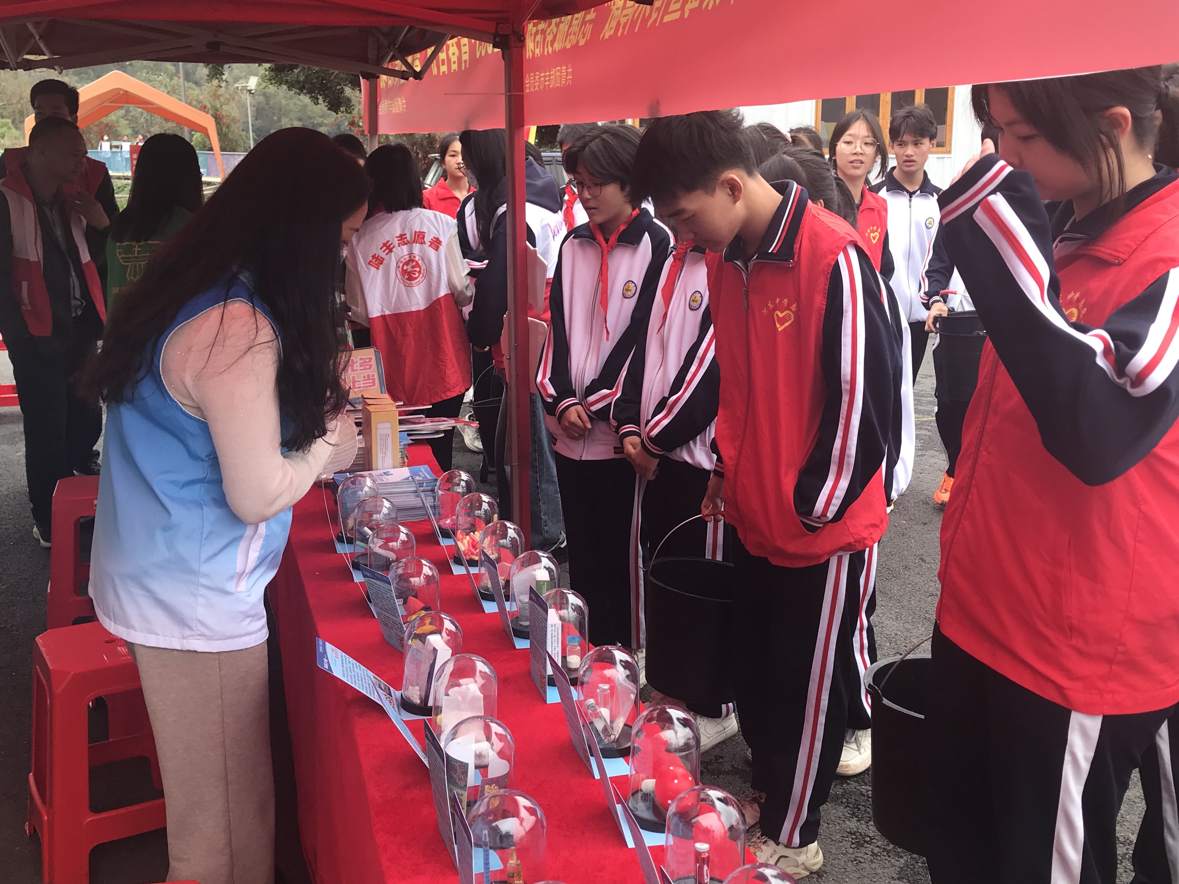 植树活动中,大家互相配合,铲土挖坑、放入树苗、填土浇水,植树现场不时传来欢声笑语,一个小时后,一颗颗小树苗就稳稳的扎根在了土里。这次活动不仅让他们亲身体验了劳动的乐趣,培养了大家的环保意识,更让他们感受到美化与爱护自然环境对于人类生活的重要性。随后,在禁毒工作人员的带领下,组织学生到禁毒宣传摊位参观毒品模型,更直观的了解和认识毒品,同时禁毒社工为学生们宣讲禁毒禁种知识及相关法律法规,并通过趣味问答、发放小礼品等方式,引导大家积极参与禁毒宣传,禁绝禁种毒品,共同构建“防毒长城”。