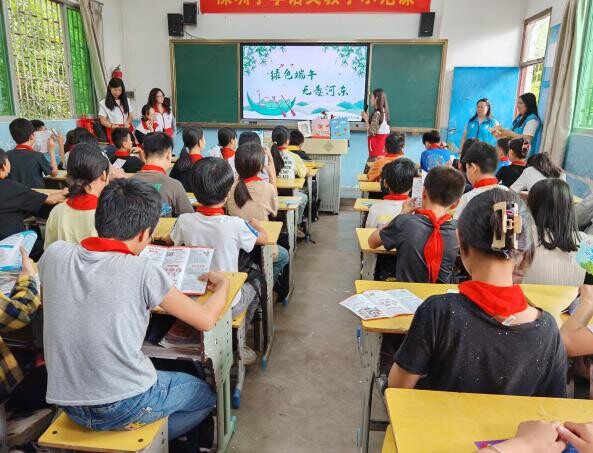 活动中,镇团委书记廖静向孩子们介绍了端午节的由来和传统习俗,从屈原的忠诚壮举,到粽子和龙舟的象征意义,通过播放PPT图片形式讲解详尽而生动,孩子们听得津津有味。同时,通过互动抢答竞赛的形式,调动现场学习氛围,给回答正确的孩子送端午节礼品。孩子们精神焕发,跃跃欲试,都做出了举手抢答的准备,通过刚刚的知识科普,每个问题一出就有孩子敏捷的举手抢答,现场气氛非常欢快。志愿者用丰富的活动载体,拓宽了孩子学习传统文化渠道,在继承和发扬我国优秀传统文化的同时,学习变得生动而富有乐趣。
