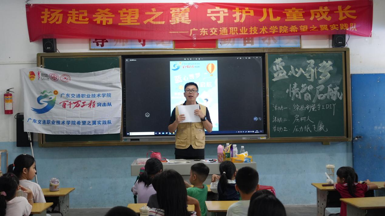 2024年8月14日,广东交通职业技术学院希望之翼实践队在河东镇大屯小学成功举办了一场以蓝色为元素、名为“蓝心寻梦,情智启航”的心理主题活动,该活动由实践队指导老师曾生峰主持。