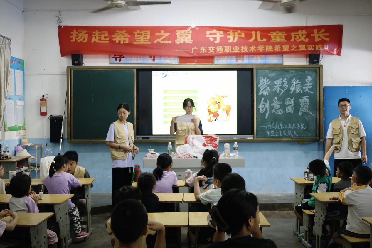 8月16日,广东交通职业技术学院希望之翼实践队走进河东镇,为孩子们精心策划并举办了一场以“紫彩绘美,创意留霞”为主题的精彩活动,为孩子们带来了丰富多彩、充满欢乐与惊喜的一天。