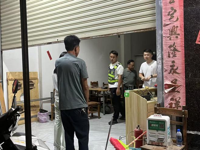 当晚的行动由镇主要领导任总指挥,统一调度镇领导班子成员,全体干部职工,派出所全体干警,后坎、高田等各村“两委”干部和网格联防队员,共计160余人,组成多个检查组,分片分区同步开展清查。行动聚焦各类经营场所、人员密集住宿区域、仓储物流单位及电动自行车违规停放等重点部位,实施“全覆盖、无死角”拉网式排查。