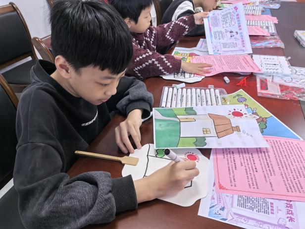 活动当天,现场气氛温馨而活跃。孩子们在镇、村两级妇联志愿者的引导下,充分发挥天马行空的想象力与创造力,认真专注地投入到绘画创作中。他们用稚嫩的笔触、鲜艳的色彩,在扇子上尽情挥洒,勾勒出绿树环绕、鲜花盛开的庭院,描绘出整洁有序、充满趣味的家园场景。一幅幅充满童真、童趣和美好愿景的画作,不仅展现了孩子们对美好生活环境的热爱与向往,也生动体现了“美丽庭院”创建活动在孩子们心中播撒下的绿色、文明种子。