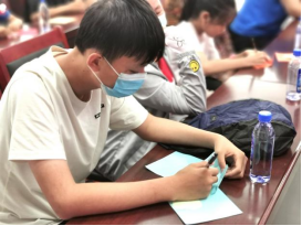 最后,在镇妇联副主席叶丽洁的指导下,孩子们用稚嫩的双手为在场的爱心企业和爱心人士写上感谢信,把感谢信折成爱心形状,用最简单、最真诚的方式表达内心的感谢和感动,并表示一定要好好读书,将来做一个对国家和社会有用的人。