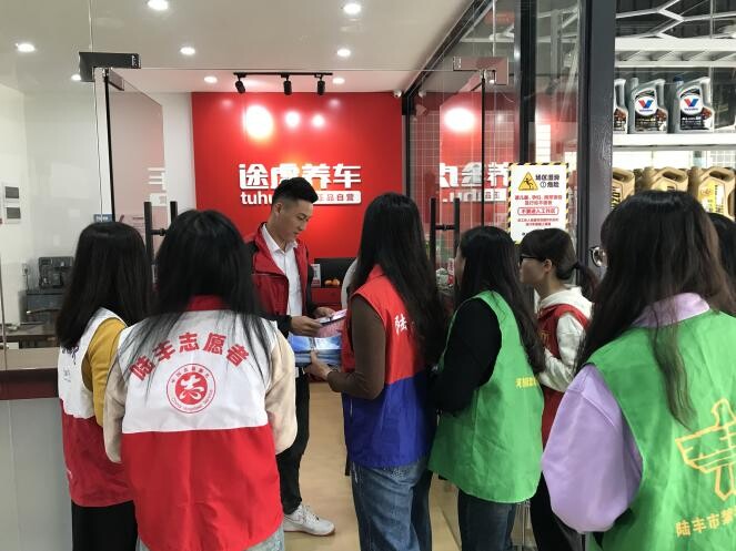 活动中,志愿者们通过向沿街的商户、过往行人发放交通安全手册,讲解交通事故典型案例等方式,进一步增强广大交通参与者交通安全意识,共同营造良好的交通环境。