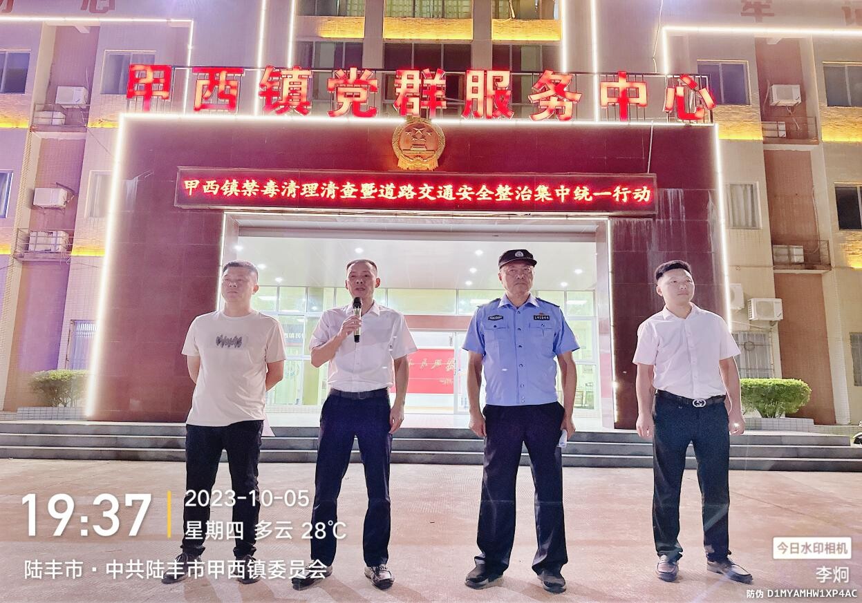 根据省委、市委“百千万工程”关于维护社会治安稳定、保障民生常态等工作部署,进一步确保中秋国庆双节期间我镇社会大局平安稳定,全面加强本辖区涉毒全要素排查整治管控和道路交通安全整治。10月5日晚,甲西镇党委、政府组织镇村领导同志、驻村民警、驻村工作组、禁毒突击队、网格联防员等力量,在新青村和228国道南甲公路、甲港公路等主要交通路段开展禁毒清理清查暨道路交通安全整治集中统一行动。