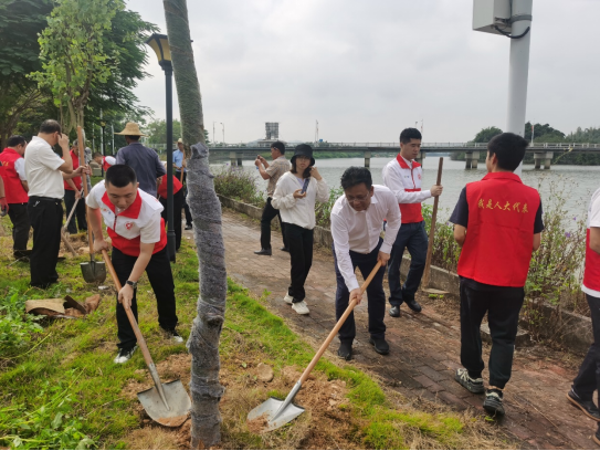 为深入贯彻落实党的二十大精神和习近平生态文明思想,全面推进“百县千镇万村高质量发展工程”,做好绿美生态建设工作,牢固树立和践行“绿水青山就是金山银山”的理念,10月25日上午10时,我镇联合市委政法委、市委编办等单位,在蛟溪村前河边休闲步道和村前池塘边开展 “十月小阳春”植树活动。