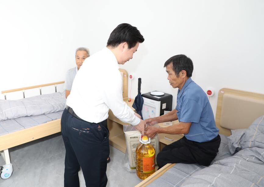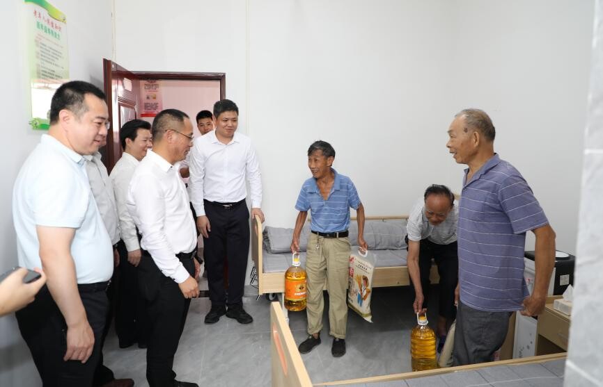 仪式结束后,参会领导开展爱心慰问行动,为老人送上油米