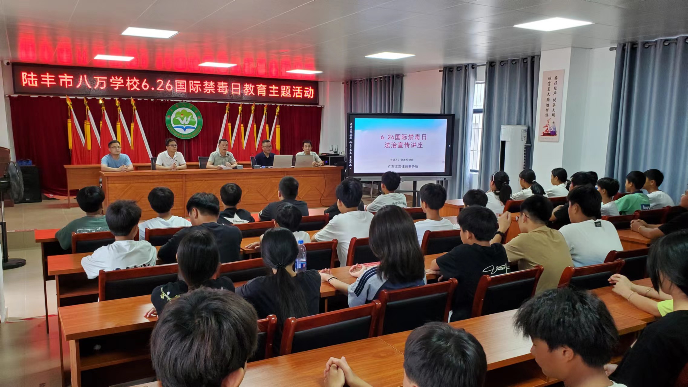 为深入开展“6.26”国际禁毒日宣传教育工作,切实提高青少年防毒拒毒意识,普及禁毒法律法规,营造良好的校园禁毒氛围,2024年6月26日,镇禁毒办联合律师到我镇八万学校开展“6.26”国际禁毒日法律知识讲座。