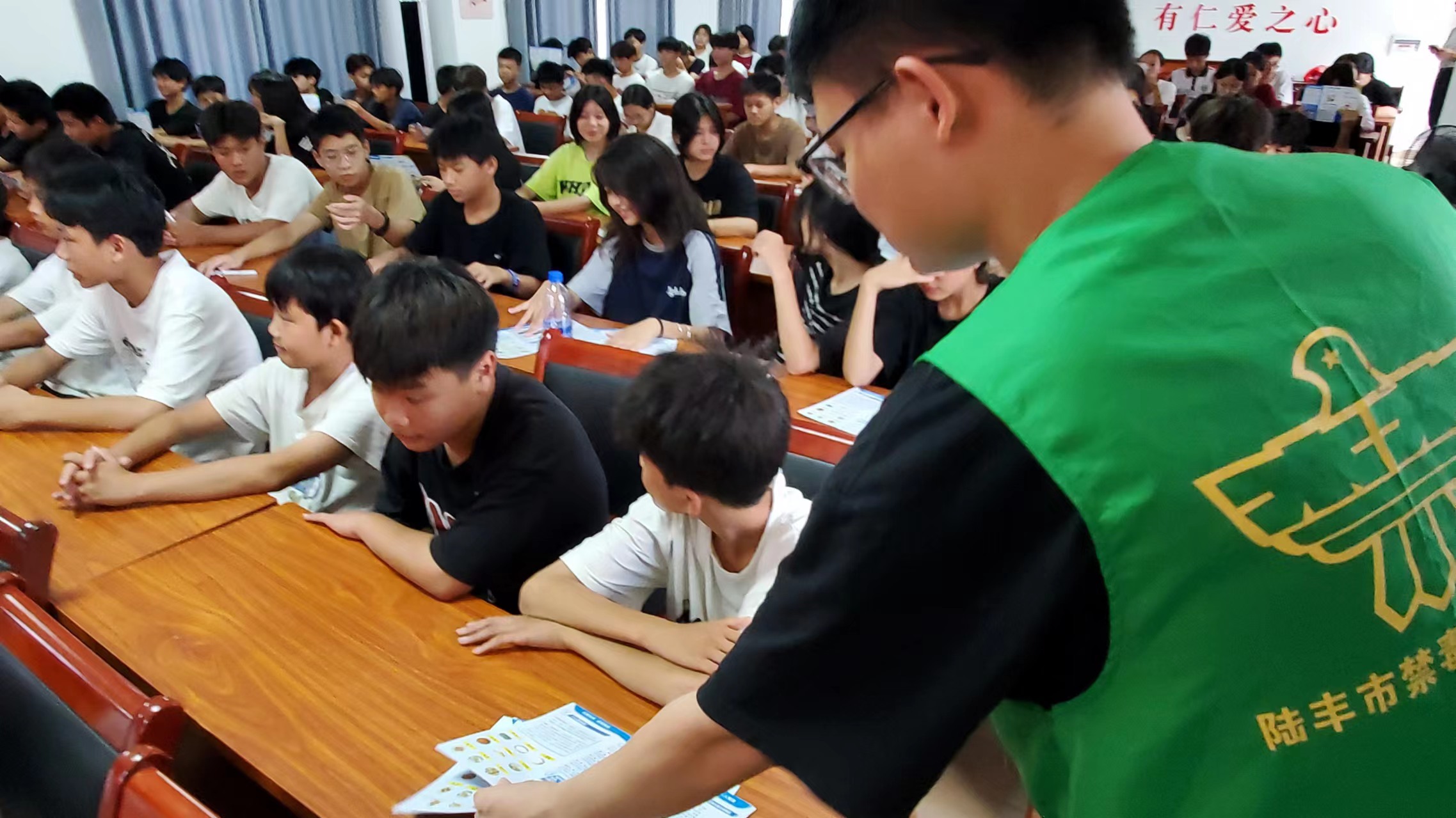 此次讲座中,由两位律师向同学们生动讲解“6.26”国际禁毒日的由来和,教导如何辨识大麻、冰毒、海洛因等传统毒品和依托咪酯、LSD、三唑仑等新型毒品,以PPT图文介绍、现场互动解答、视频普法等形式向师生普及相关禁毒知识,提醒大家要时刻提高警惕,学会辨别在日常生活中的伪装毒品。特别是暑假将至,告诫学生不要随意出入娱乐场所,且不要接受陌生人提供的物品,同时,引导学生树立正确的人生观,不为赶时髦或盲目寻求刺激而去尝试“上头电子烟”。活动结束后,禁毒志愿者向学校师生们分发《禁毒倡议书》宣传单和禁毒画册。