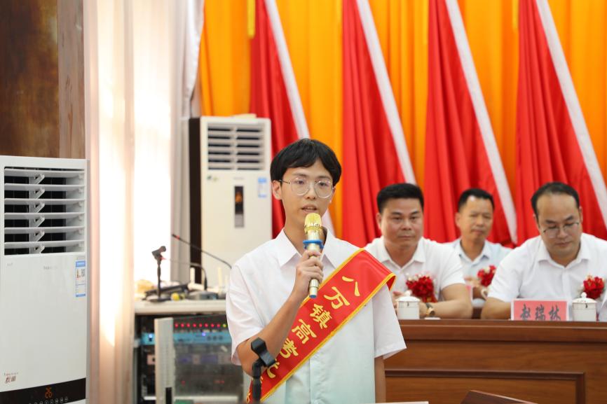 会上,八万镇赵瑞林副镇长宣读了八万中考、高考优秀学生名单。由八万教育促进会乡贤代表对受表彰优秀学生进行颁奖。优秀学生依次上台发言。