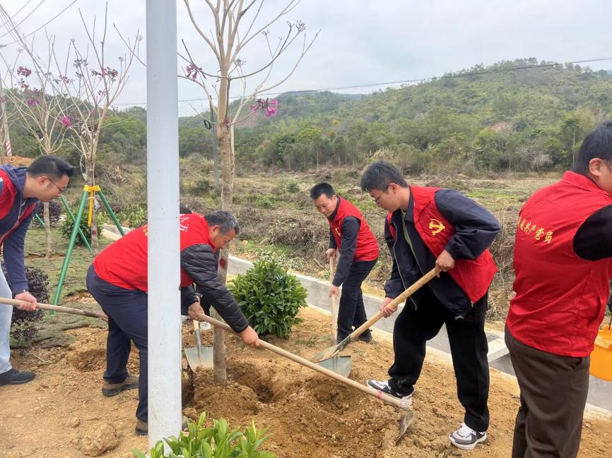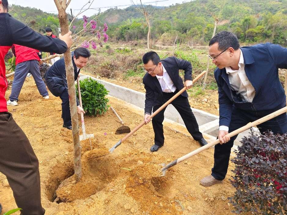 2月19日,苹果直播 副市长、驻镇领导叶志帆、市政府办公室党组成员蔡振杰、市林业局局长林坤炼一行到我镇双派村开展2025年绿美生态建设义务植树活动。镇党委书记蔡景章、镇长庄小民与镇村干部参与,齐心协力为2025年乡村绿化工作“开好头、起好步”。