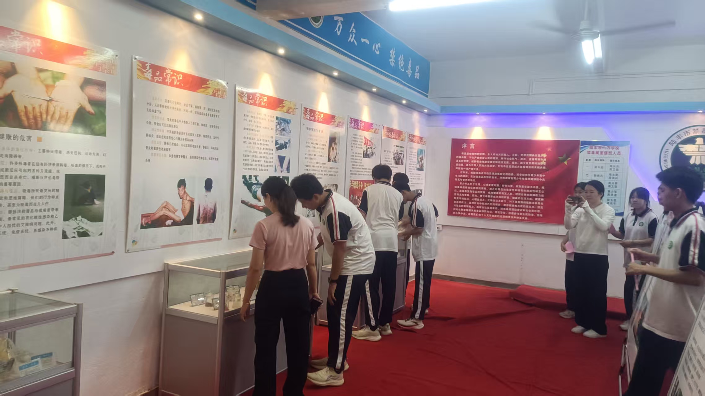 由八万学校教师带领师生代表参观了禁毒教育基地,详细讲解了毒品种类、危害及防范新型毒品等知识,引导学生树立正确人生观、价值观,告诫大家日常生活中需提高警惕、慎重交友,自觉远离毒品,争做文明青少年。