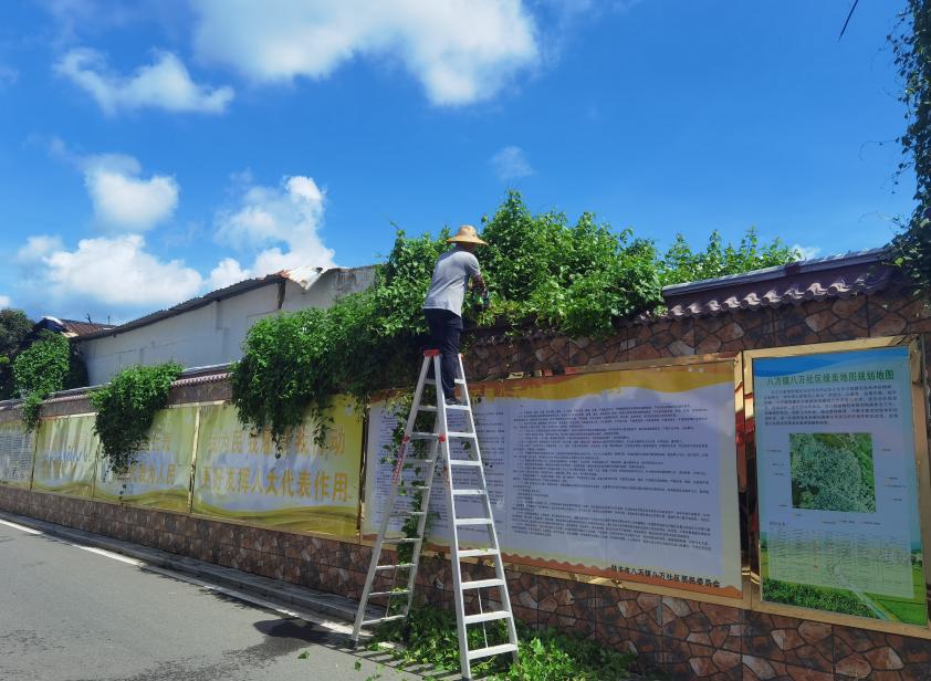 聚力“优环境”,同心美家园。为进一步巩固人居环境整治成果,八万镇整合多方力量,以“争典型,一起干”为载体,联合驻镇帮镇扶村工作队和市监局、林业局等挂驻单位共同开展“每周清洁日”行动,组织镇村干部下沉各村(社区),与村民并肩清理房前屋后垃圾、疏通淤堵沟渠、铲除卫生死角。同时,同步推进“斩草清杂”绿美攻坚行动,由镇主要领导带队,镇村干部、志愿者共同参与杂草清除、灌木修剪、景观清理等工作,以实际行动带动群众参与到家园绿化美化中来。通过“干群同劳动”的实践模式,不仅清除了人居环境“污点”,更拉近了干群距离,激发了群众自主参与整治的热情,让干净整洁、生态宜居的镇村新貌成为常态。