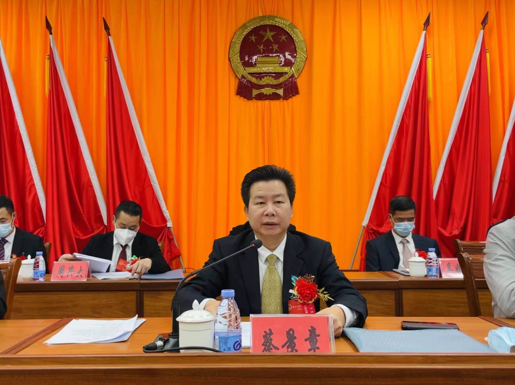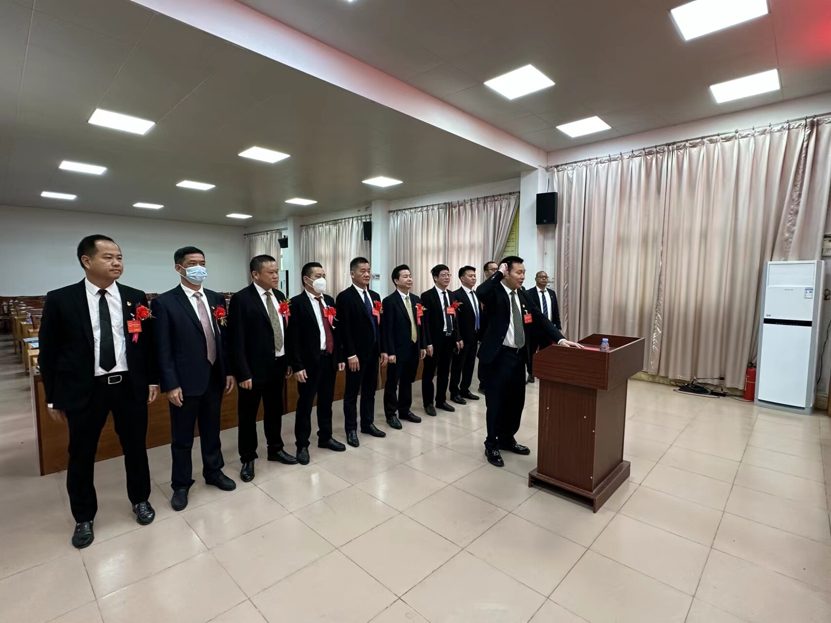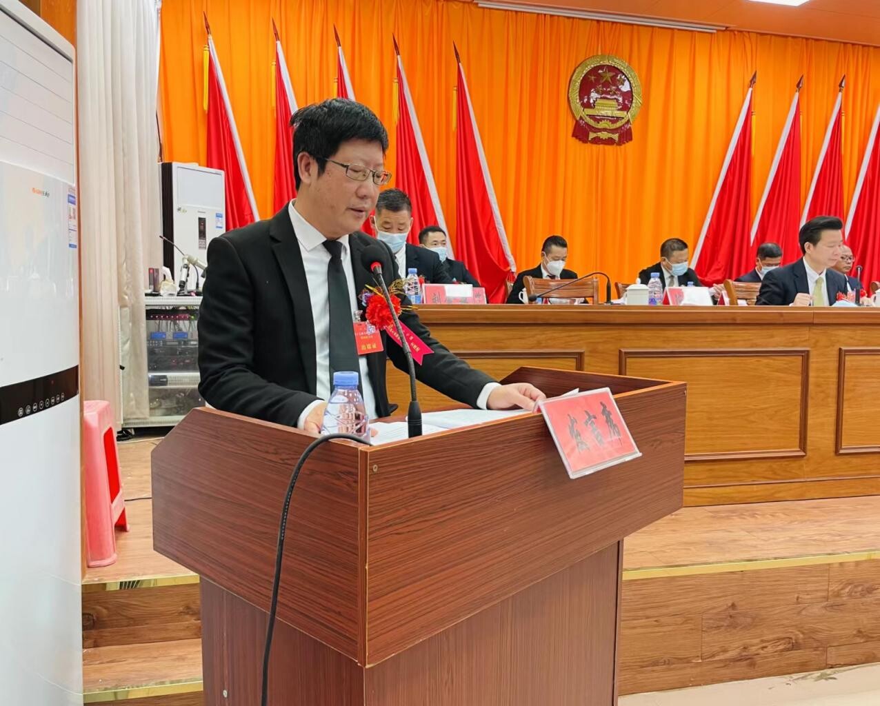 会后,新当选八万镇人民政府镇长庄小民面对宪法和国旗庄严宣誓。