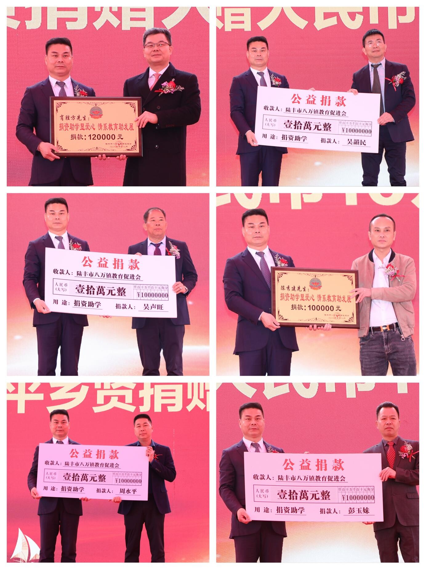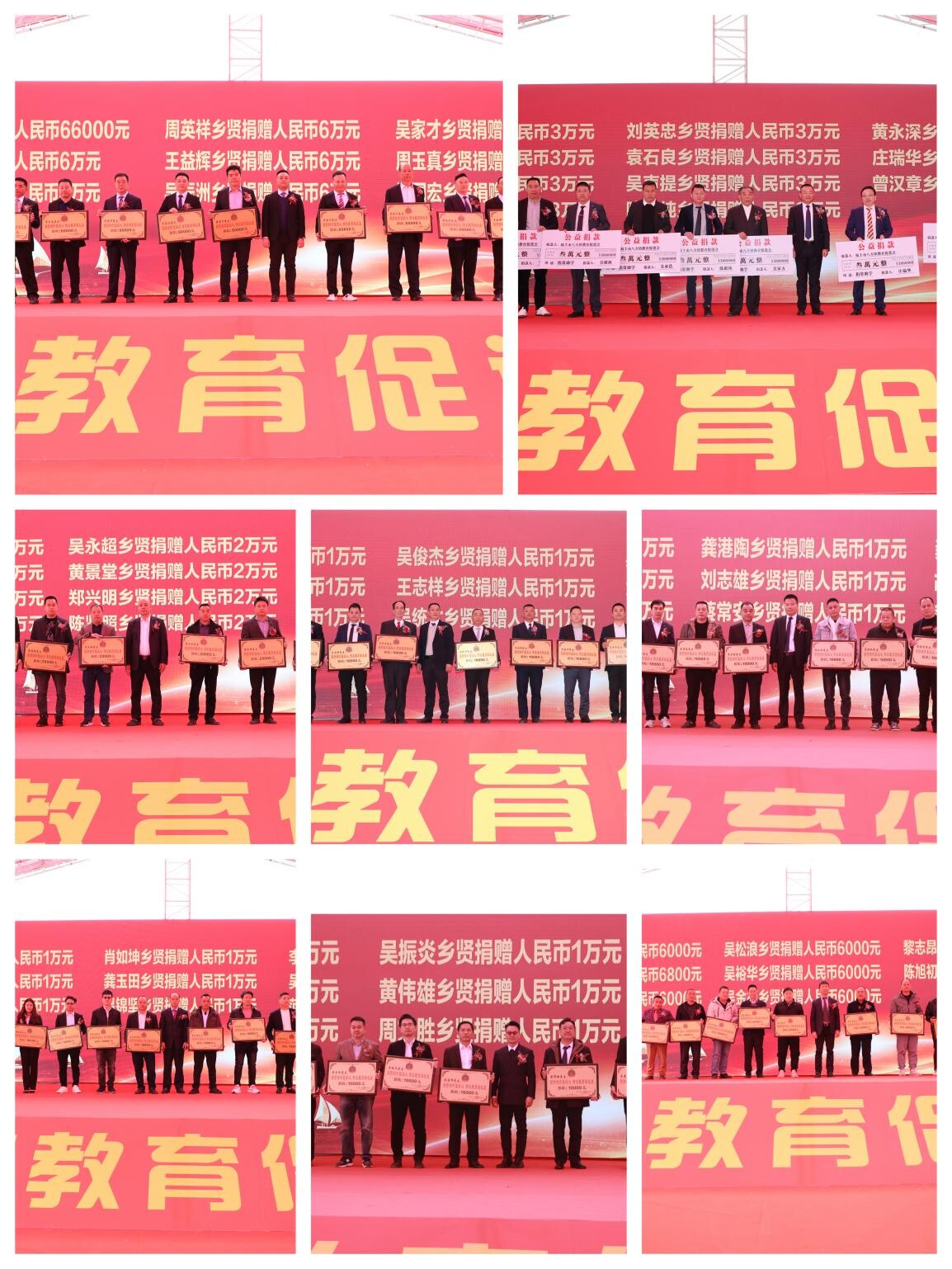 下半场为教育促进会成立大会,会议对当选人员逐一进行授牌,并举行了大会成立启动仪式和认捐仪式,自筹备工作启动以来,广大乡贤、外出企业家和各界人士积极响应、踊跃捐资,截至目前共筹集善款618万元,发展会员近百人。