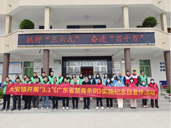 3月1日,大安镇组织镇政府干部职工、村(社区)两委干部、网格员、禁毒志愿者联同妇联、双百社工等群团组织开展纪念“3.1”《广东省禁毒条例》实施日禁毒宣传活动。