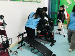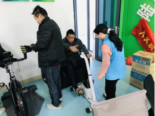 残疾人会员们在康园使用康复器材锻炼自己,如有的会员组队开始下象棋、跳棋来锻炼思维能力,有的通过骑单车等来锻炼自己的协调能力。
