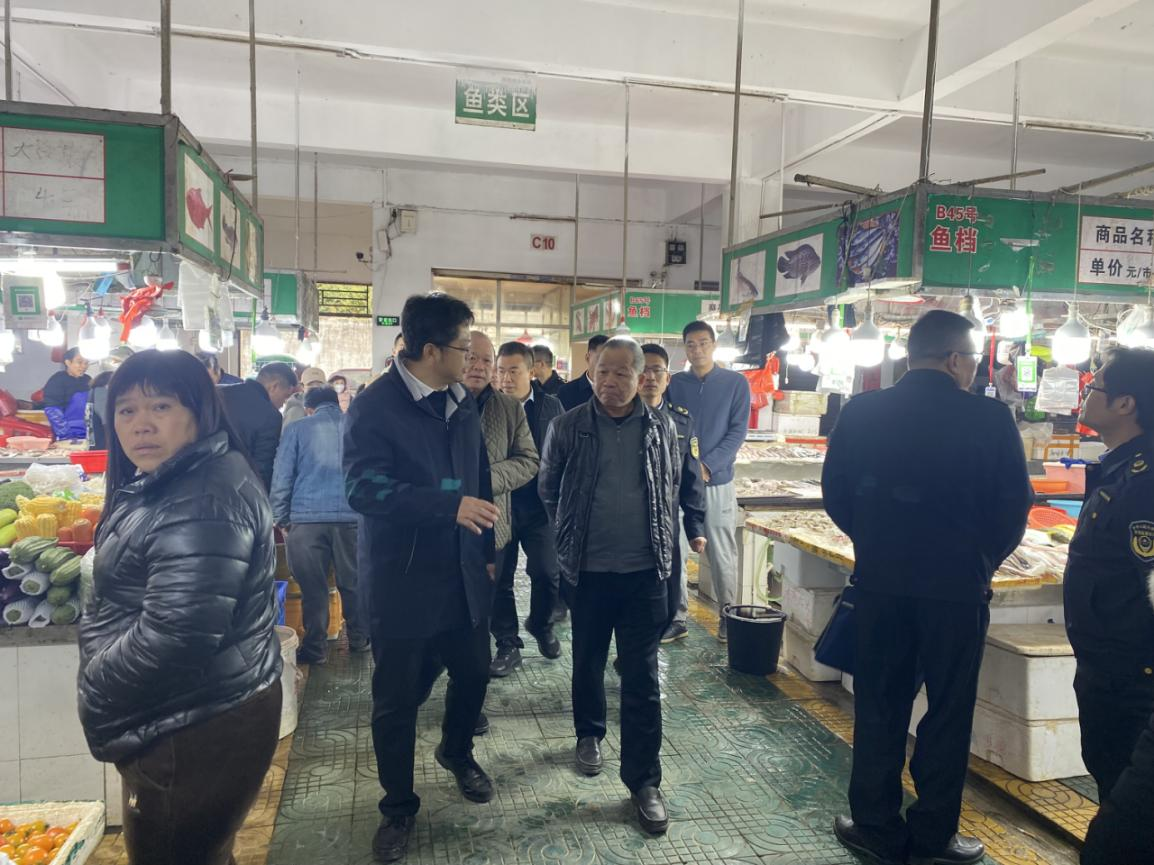 在后坑市场时,他强调要做好市场的升级改造,通过升级改造解决市场环境卫生,食品安全等诸多问题,确保市场区域干净整洁,让消费者买得放心,吃的安心。