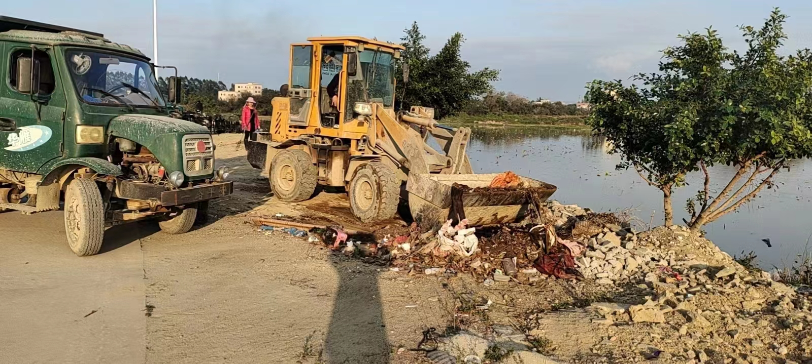 2月12日,各村(社区)迅速组织动员“两委”干部、网格员、党员、志愿者、群众等人员,纷纷拿起扫帚、铲子等清洁工具,清理整治房前屋后、背街小巷的堆积物、杂草,打捞周边水域漂浮物等,更是出动挖机、拖拉机等大型车辆,加快垃圾清运效率,推动人居环境提档升级,使河西“净起来、绿起来、亮起来、美起来”。