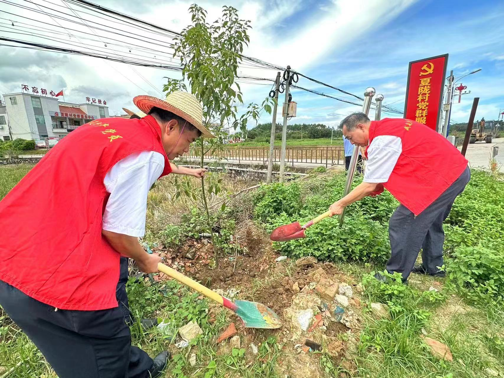 本次种植活动选择碳汇能力强、稳定性好、病虫害少、生态景观效益好的树种。植树现场,各党员干部分工协作,挥锹铲土,扶植苗木,提水灌溉,沿着夏陇村主干道两侧,合力栽下树苗,以实际行动动员群众积极投身到义务植树的热潮当中。