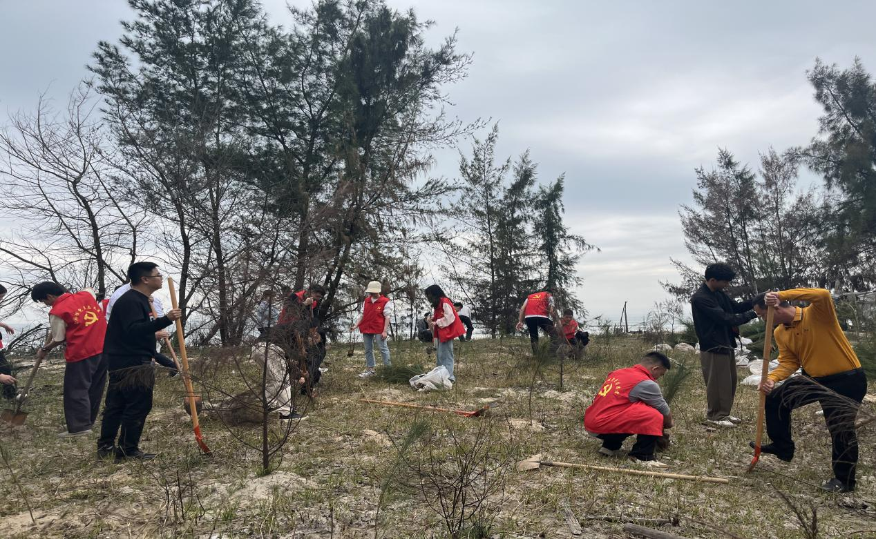 此次活动计划种植木麻黄1万株。植树过程中,由具备植树经验的党员干部向植树的党员志愿者进行教学讲解,经过学习和经验交流,大家纷纷投入到植树活动中:有的同志负责挖坑,为树苗的扎根创造合适的空间;力气大的男同志负责将树苗小心地从运输车上卸下,再扛到指定的种植位置,确保树苗不受损伤;还有的同志负责扶苗、填土、浇水,并且认真细致地调整树苗的位置与深度,以确保树苗能够茁壮成长。