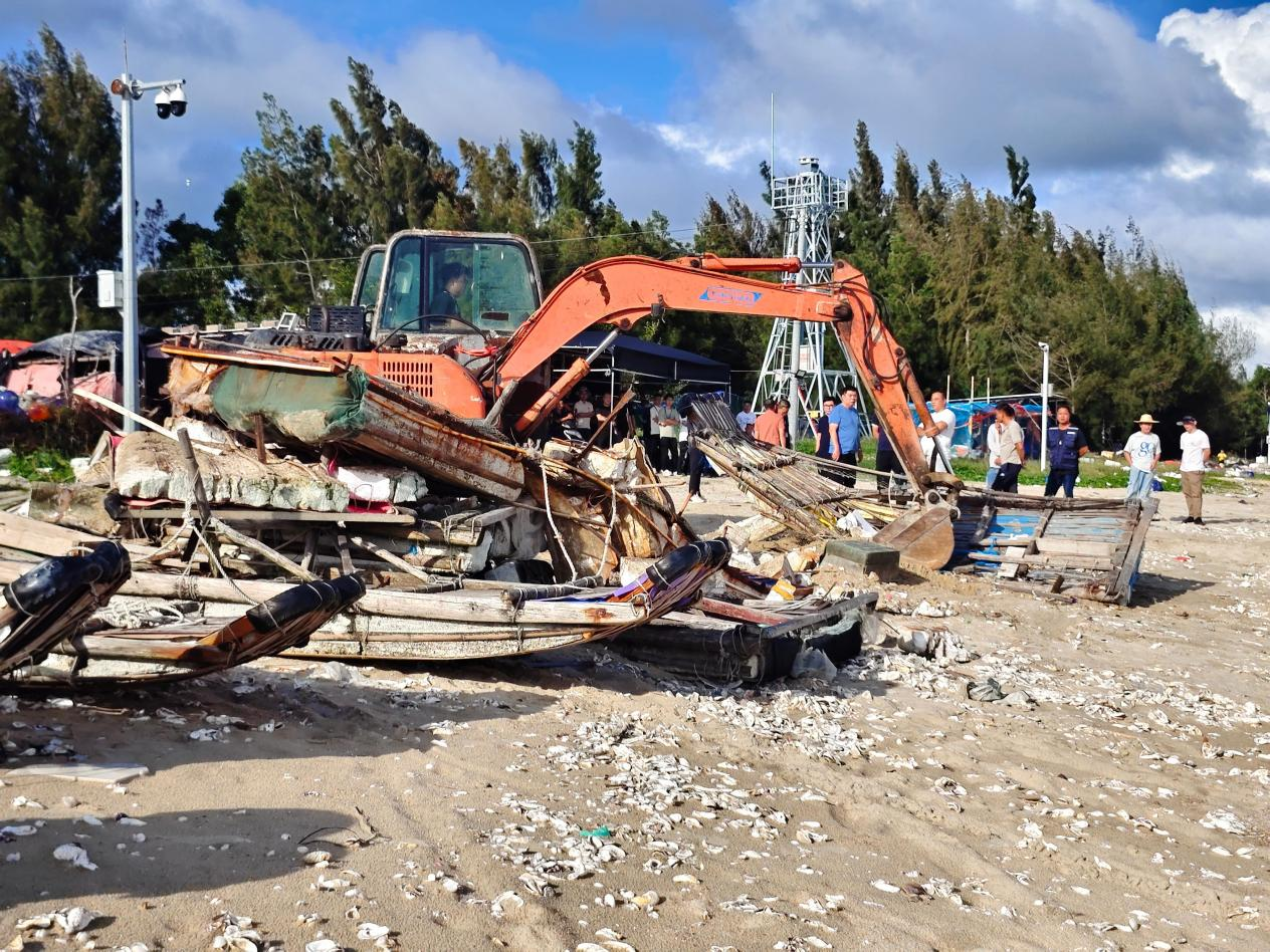 本次专项行动累计出动人员121人次、执法车辆55台次,实施重点海域全覆盖巡查。经现场执法确认,依法拆除非法"三无"船舶18艘,有效净化了金厢镇周边海域作业环境。