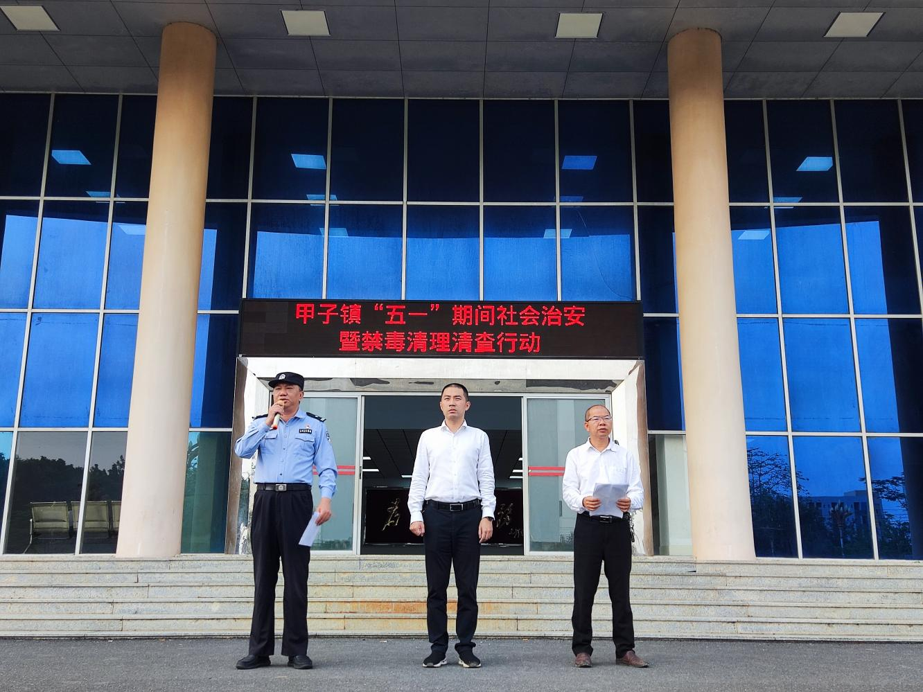 为做好“五一”期间我镇安保维稳和社会面治安防控工作,全力维护全镇平安稳定的社会面治安环境,全链条强化突出犯罪打击力度,坚决维护甲子镇社会治安大局持续稳定。结合我镇毒情实际,镇党委/政府决定于今天组织甲子镇全体干部职工、派出所所有警力、村(社区)两委干部、挂职民警及网格联防大队共498人,在甲子镇辖区范围内集中力量、重点突击,开展甲子镇“五一”期间社会治安暨禁毒清理清查行动。