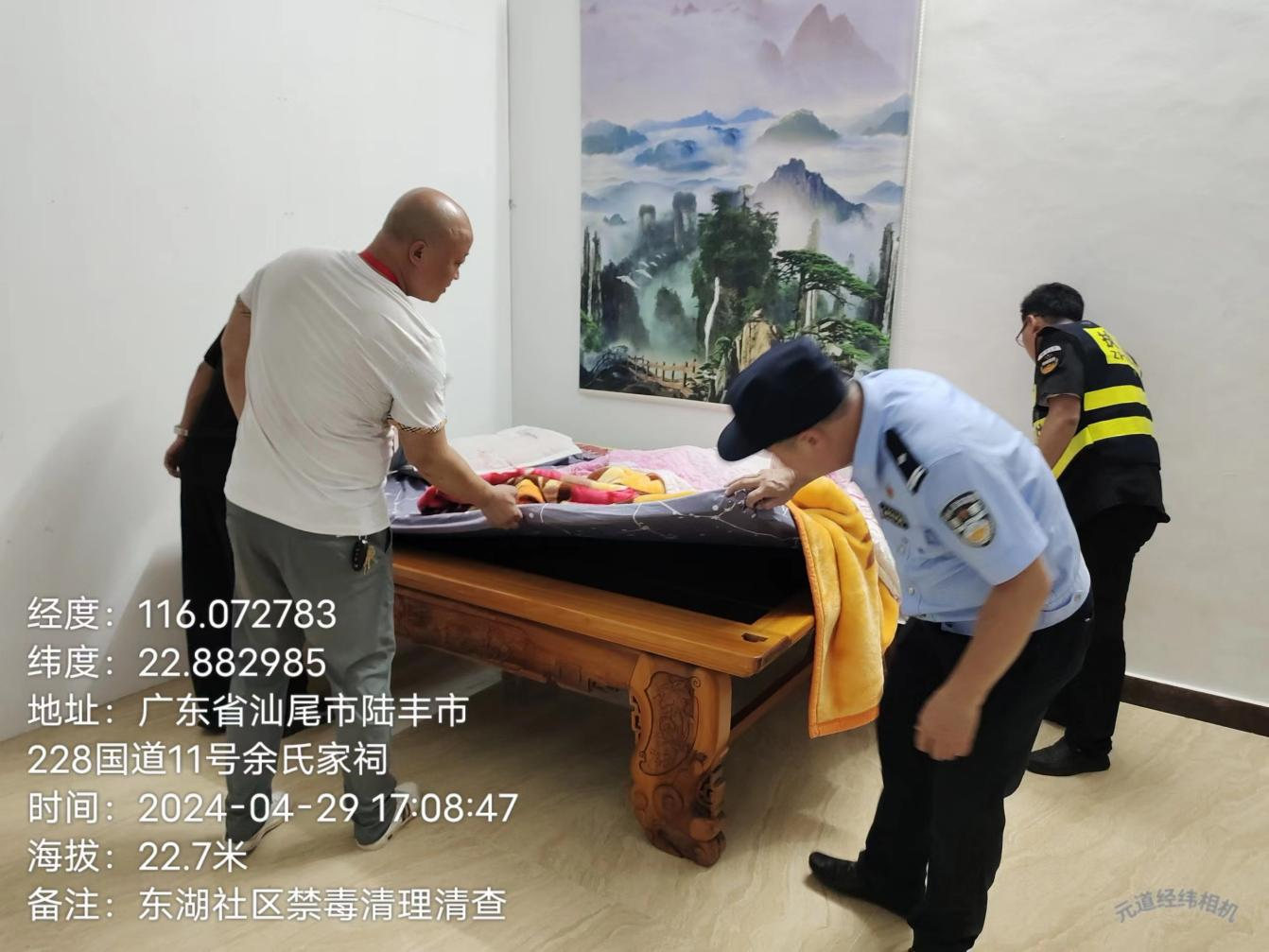 此次行动,由镇党委书记徐鸿亮任总指挥,由镇挂职副书记林轶斌做行动部署,将队伍分为14组,重点对甲子镇辖区内104栋群租房开展突击检查,对租住人员进行信息核对、登记;同时,对涉毒可疑人员开展尿液检测并检查粤居码录入情况。行动过程中,参战人员对各出租屋内冰箱、衣柜、床底及杂物间等隐蔽部位进行细致检查,并宣传教育各租户凡发现有涉嫌种毒、制毒、贩毒、吸毒等违法犯罪行为的,及时向公安机关报告。