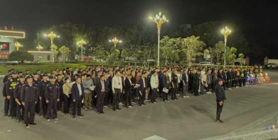 为深入学习贯彻习近平总书记关于平安建设的重要论述和对广东系列重要讲话、重要指示精神,落实省委“1310”具体部署及市委“1+2+9 ”工作安排,加强对“平安基础提升行动”进行全面部署、推动落实,在更高起点推进平安汕尾建设和禁毒示范创 建工作,为打造“西承东联桥头堡、东海岸重要支点”营造平安稳定的社会环境,结合我镇社会面统一清理清查专项行动方案,经甲子镇党委、政府研究决定,于4月8日晚上7:30分,组织镇府全体干部职工、驻村民(辅)警、“两委”干部、网格联防队员及各派出所警力共398人,开展甲子镇社会面专项清理清查统一大行动。