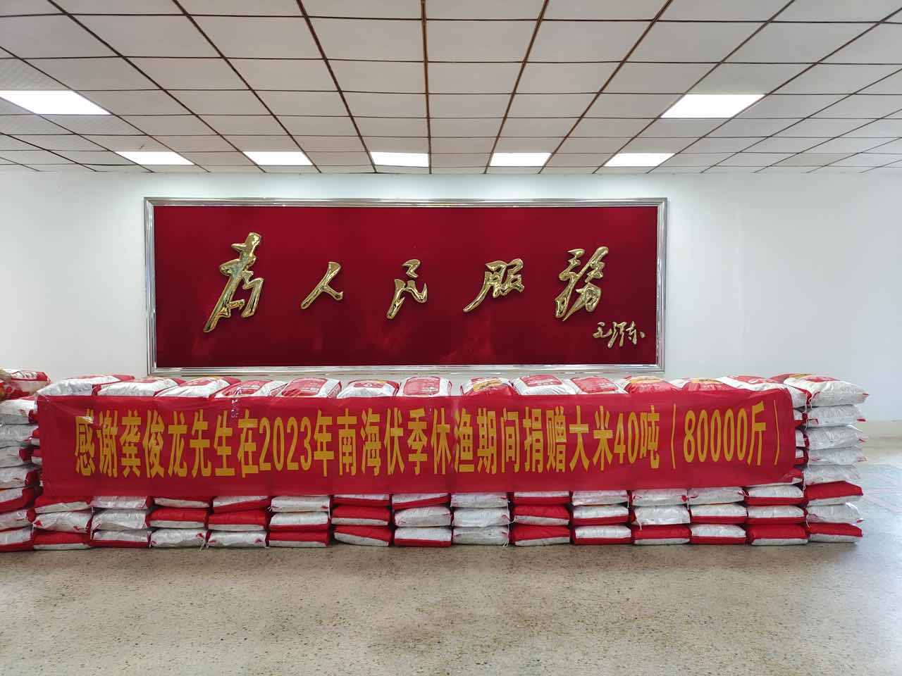 甲子镇举行2023年度龚俊龙先生南海休渔期间捐赠大米仪式